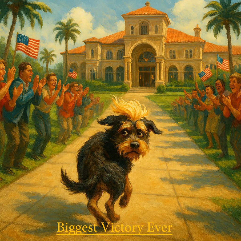 P.S. and standby for the T.A.C.O, maneuver in Iran. Declare victory, hold a parade, and move on to the next quixotic endeavor. It is the one thing he does with any consistency.