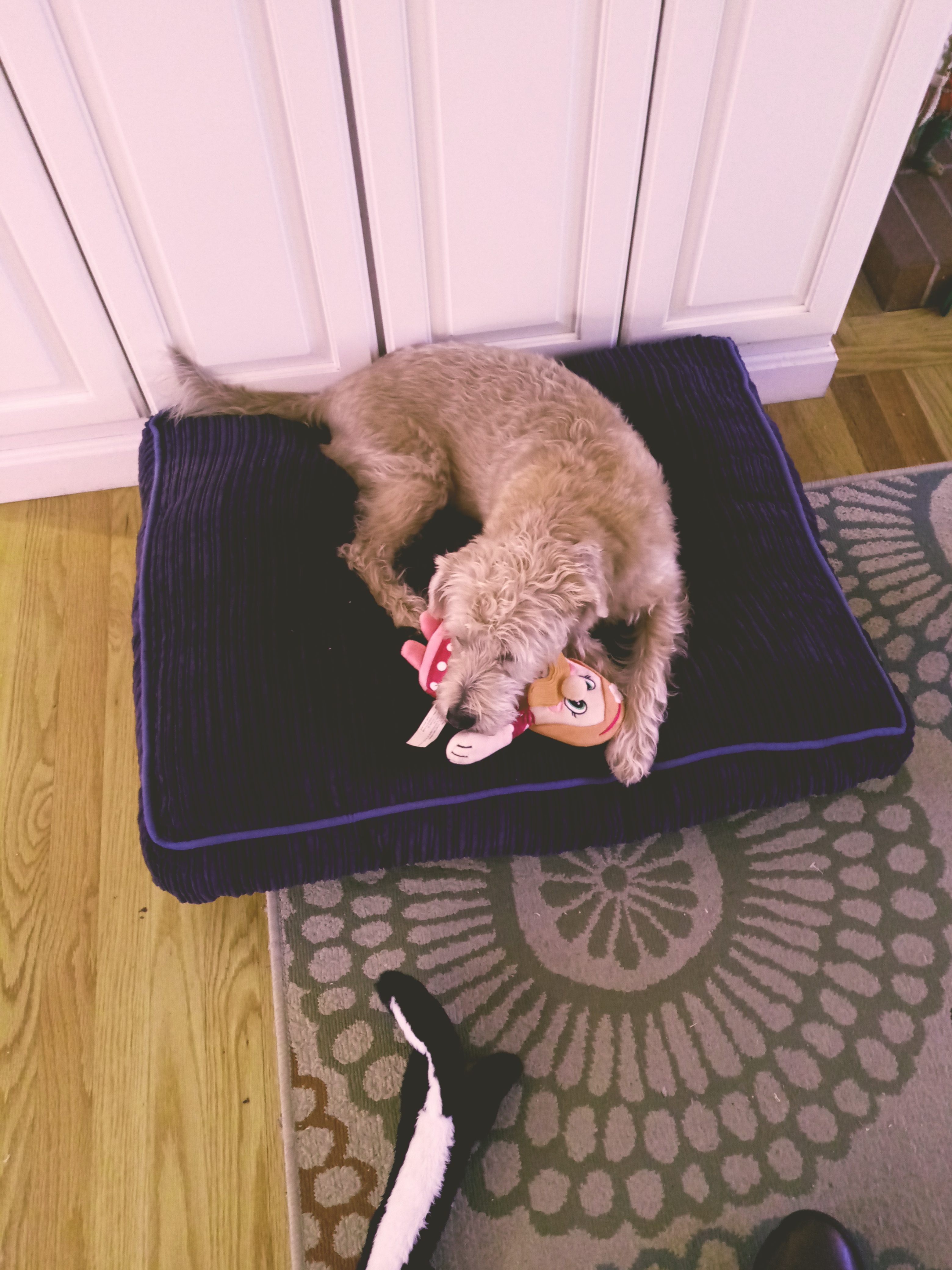 Could it be those jerky, uncontrolled movements when he sleeps are not dreams of chasing rabbits or squirrels but memories of soft cuddly toys that squeak (or perhaps in Seamus’s mind, scream) whenever he plays with them? I don’t think he’s ever seen a Sugarplum, but could he have visions in his head?