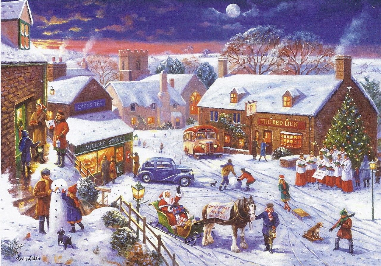 “Hey, it’s cold outside.” But Declan felt no cold air, instead he felt a warm, gentle breeze. People on the street, dressed in some weird looking clothes waved and called “Happy Christmas” as they passed by. Along the street, which had turned to dirt, they passed farms and small cottages. In the windows, green holly branches surrounded the frames and inside on the windowsill were candles.