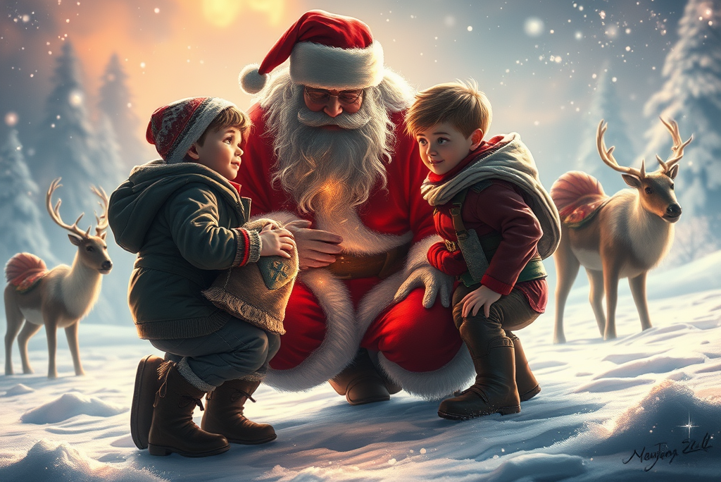 Santa let out one of his world-famous laughs, then bent down on one knee. “I understand you boys have a mystery to solve.”