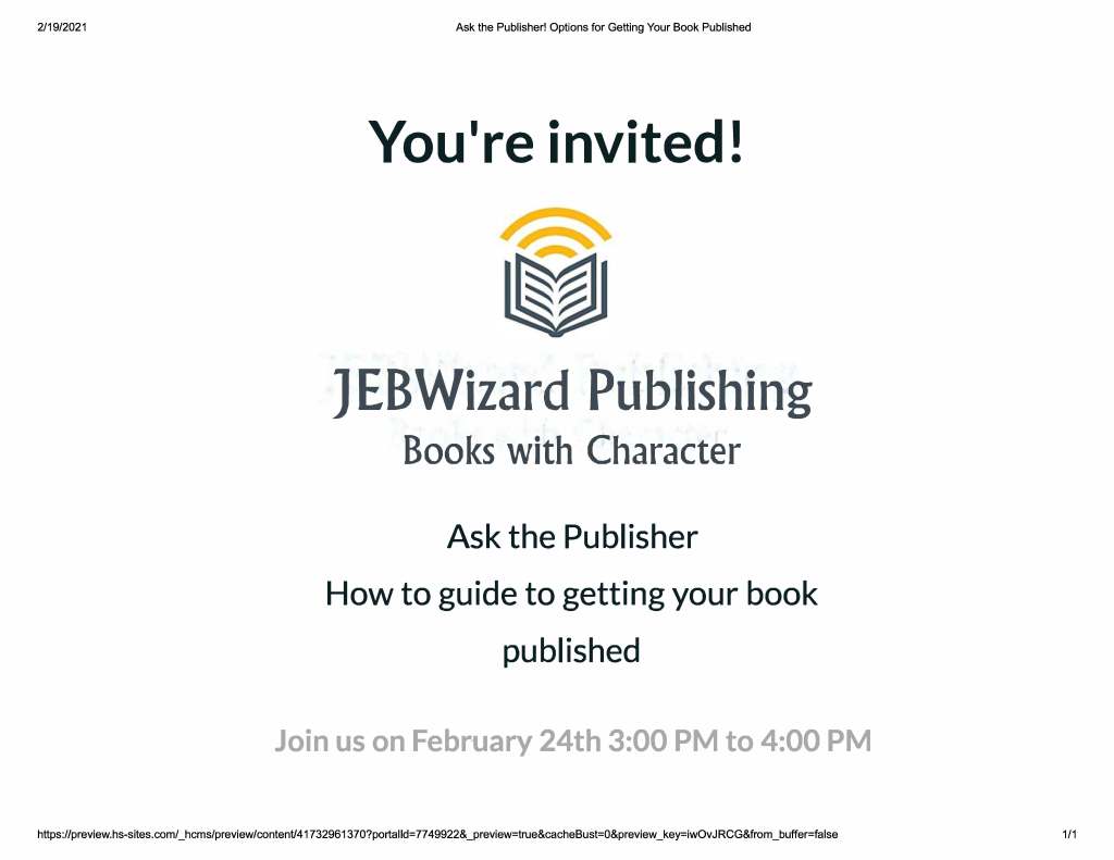 JEBWizard Publishing (www.jebwizardpublishing.com) is a hybrid publishing company focusing on new and emerging authors. We offer a full range of customized publishing services.